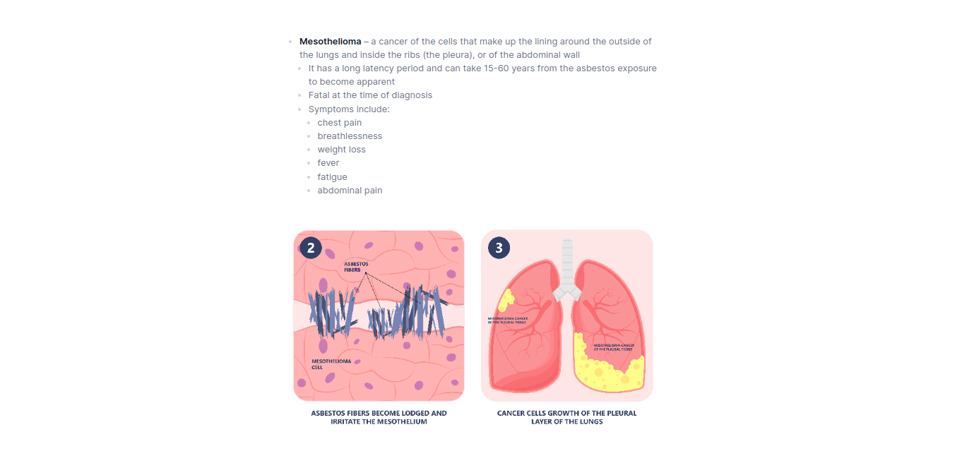 Asbestos-related diseases, including Mesothelioma and Asbestosis; how smoking worsens the effects of asbestos-related illnesses; health surveillance; workplace exposure limits (WELs); and personal protective equipment (PPE).