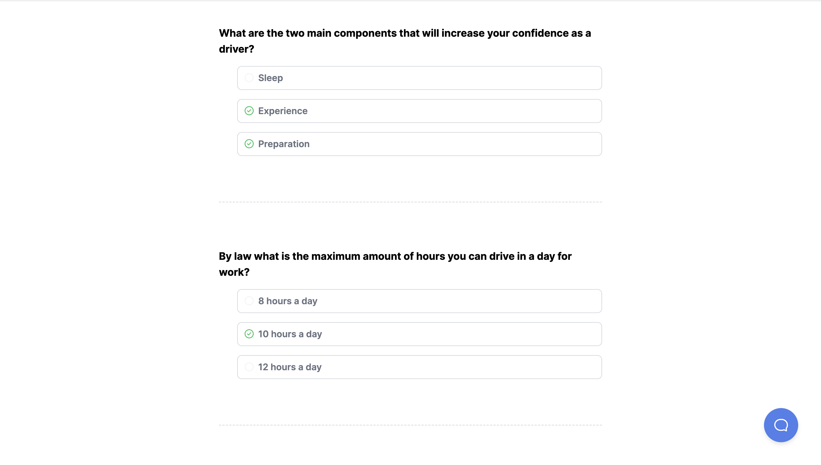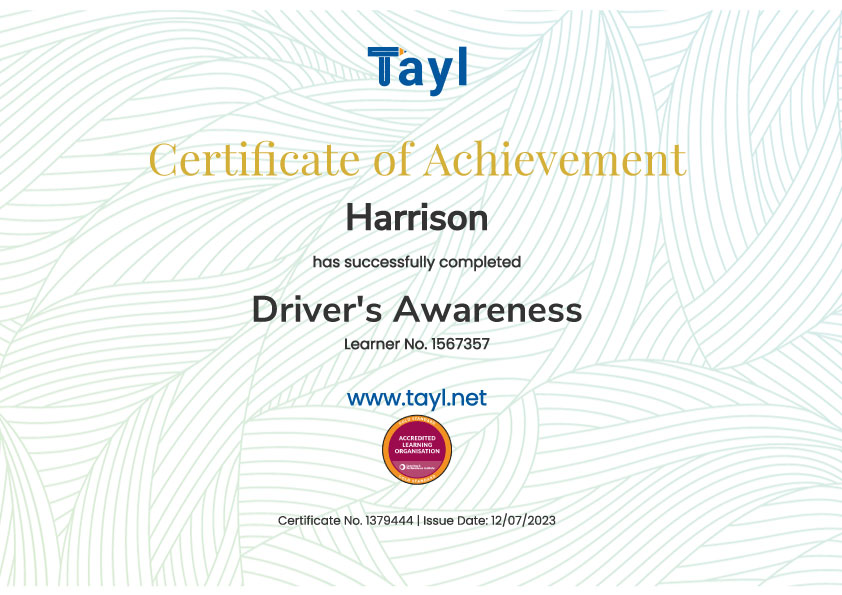 To complete your course and download your Driver’s Awareness certificate, you need to have correctly answered enough questions in the quizzes throughout the course. You’re able to retake these quizzes as many times as you want. The certificate is printable and will be accessible at any time when you log into our platform. The certificate is saved on our system so you can use it to prove a commitment to ongoing legal compliance.