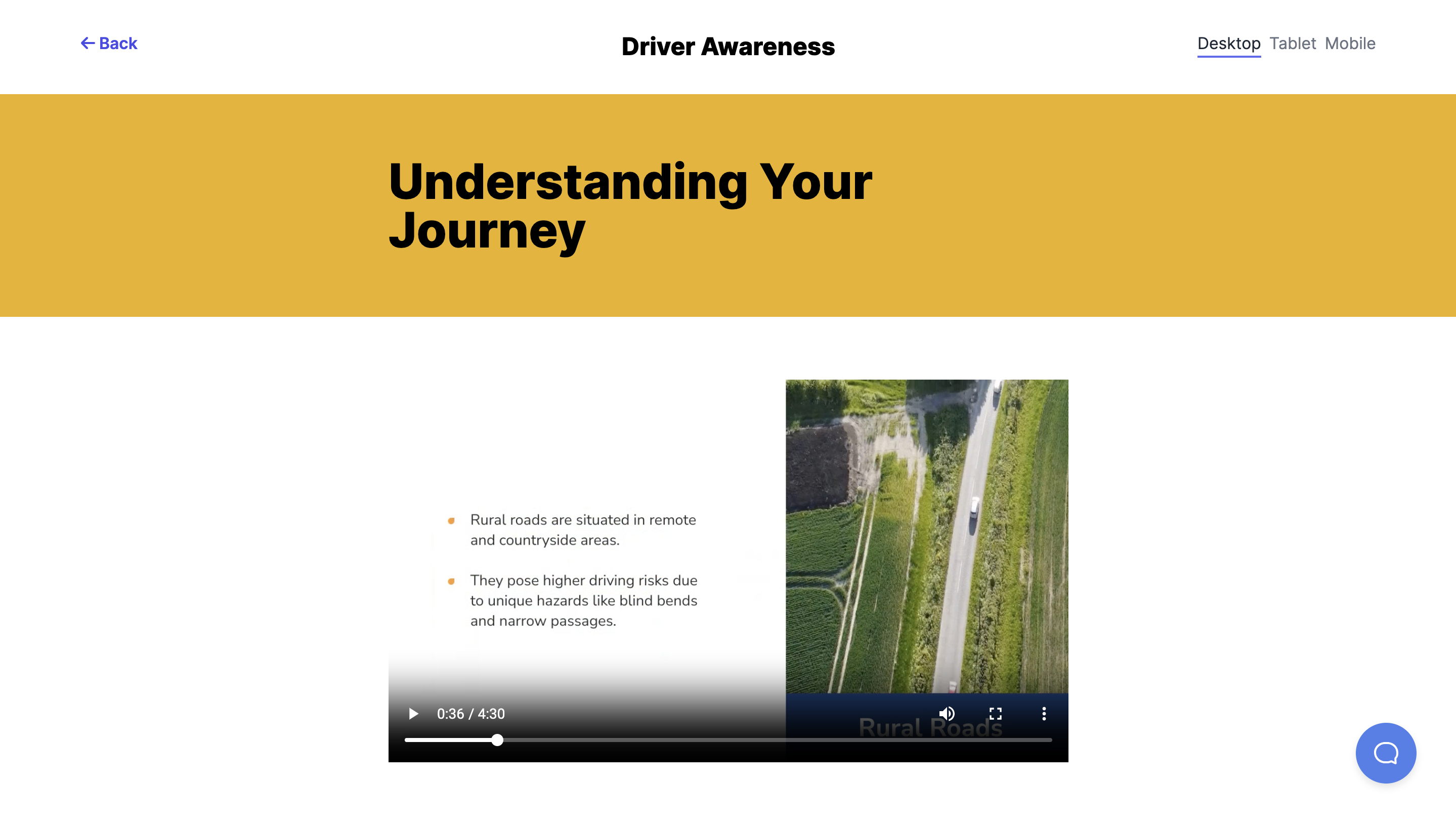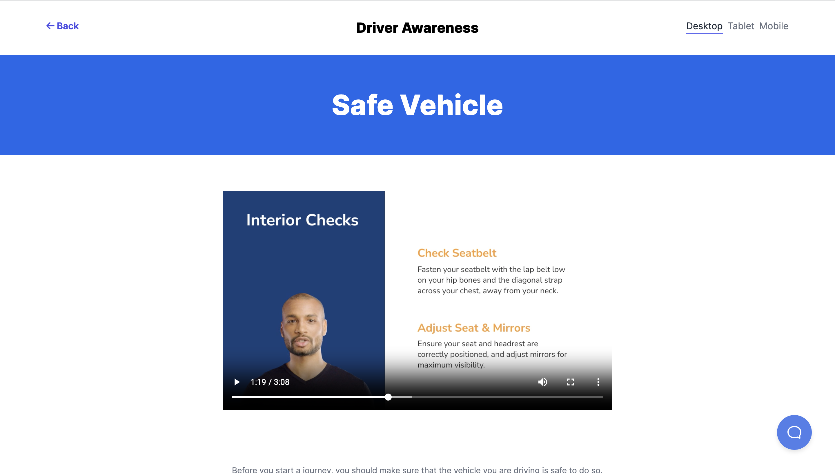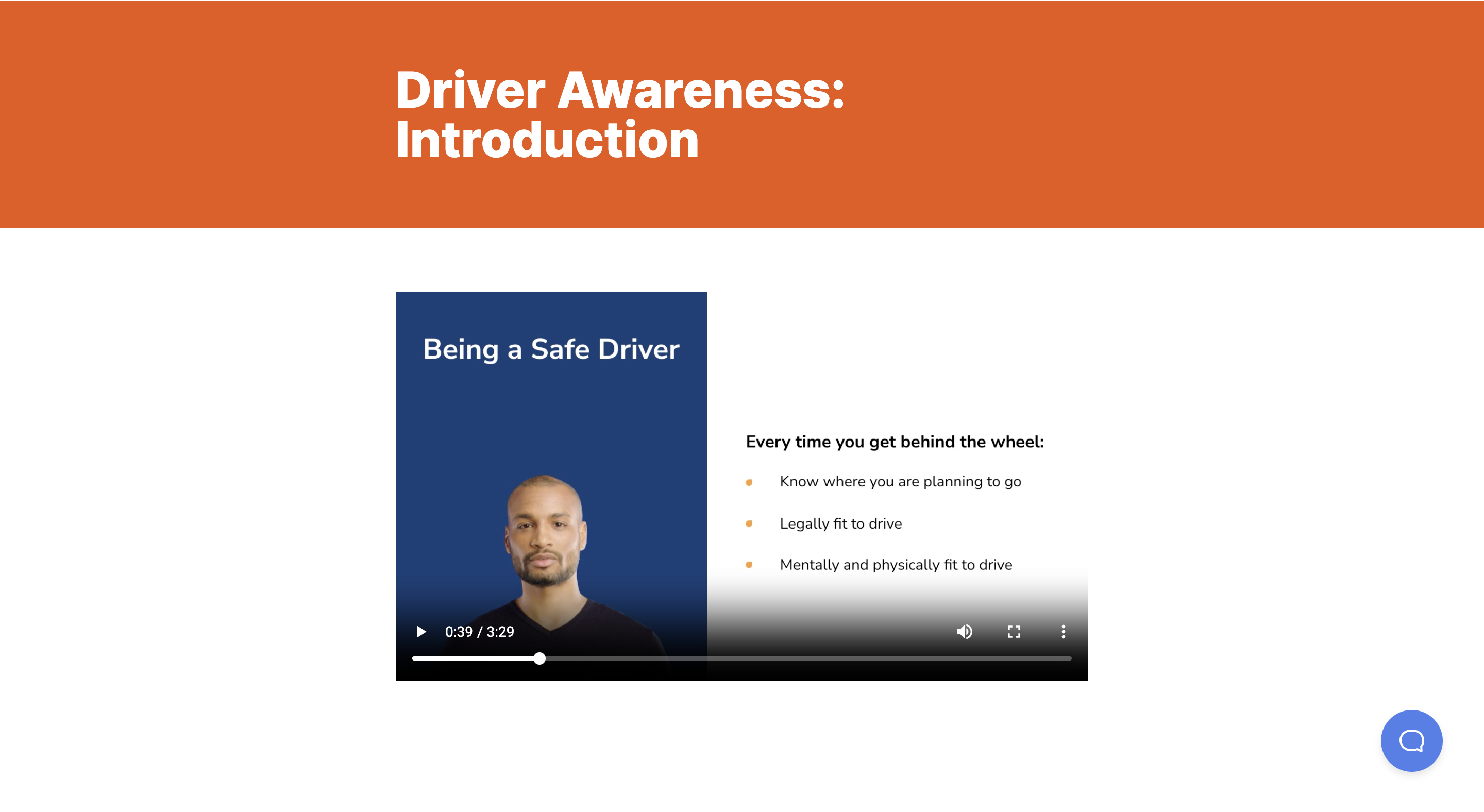 Our Driver's Awareness e-learning course is delivered online through our Tayl platform. This means you can complete this course on any device that can access the internet, and you can take a break at any time and save your progress. You can also add more users to your account, access more compliance training courses, and track who has done what.