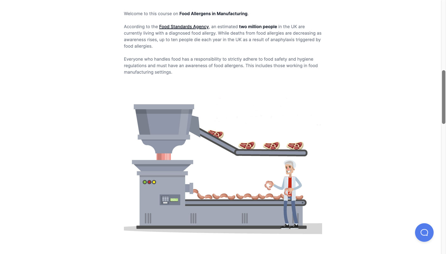 Our Food Allergens in Manufacturing e-learning course is delivered online through our Tayl platform. This means you can complete this course on any device that can access the internet, and you can take a break at any time and save your progress. You can also add more users to your account, access more compliance training courses, and track who has done what.