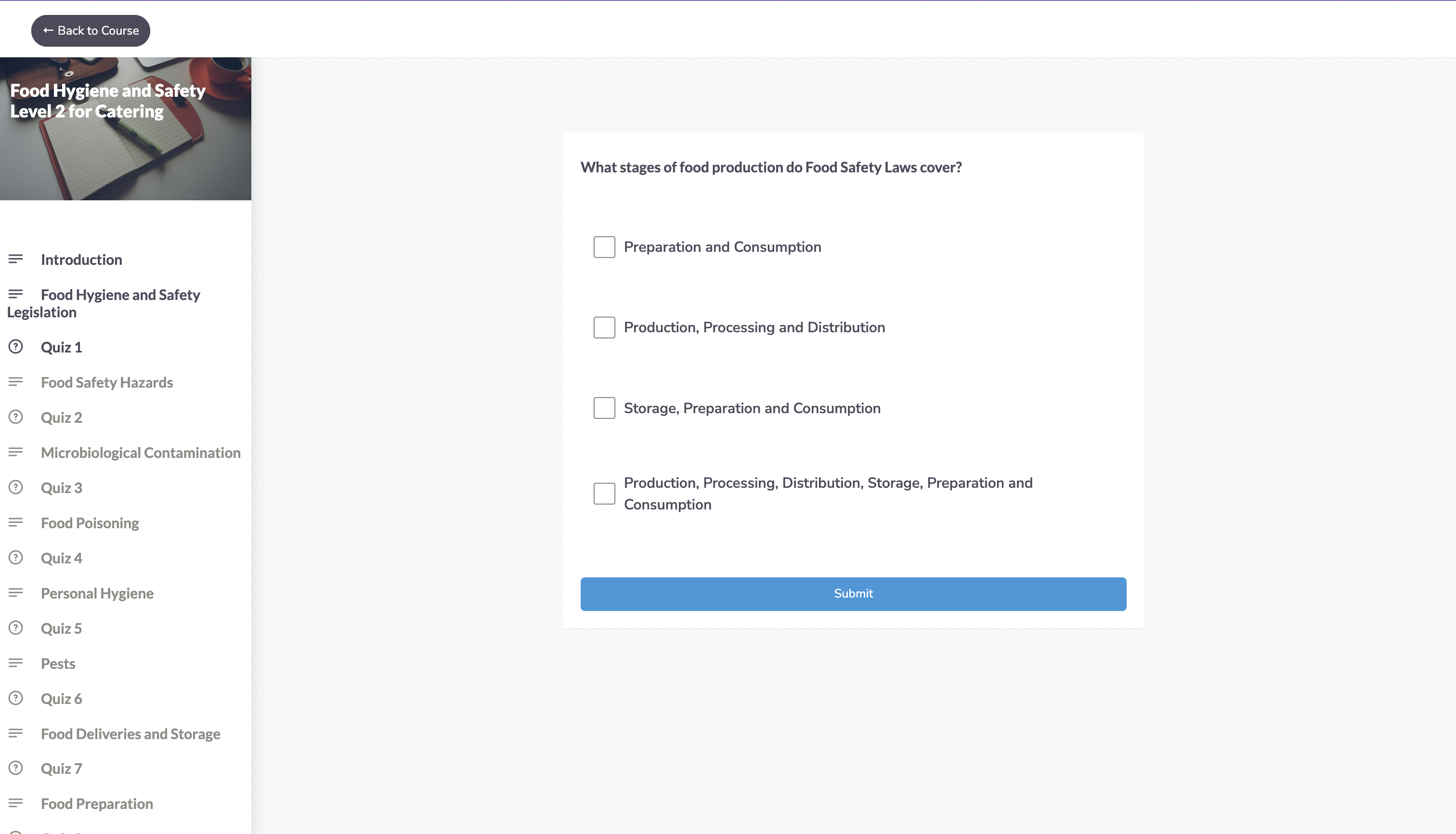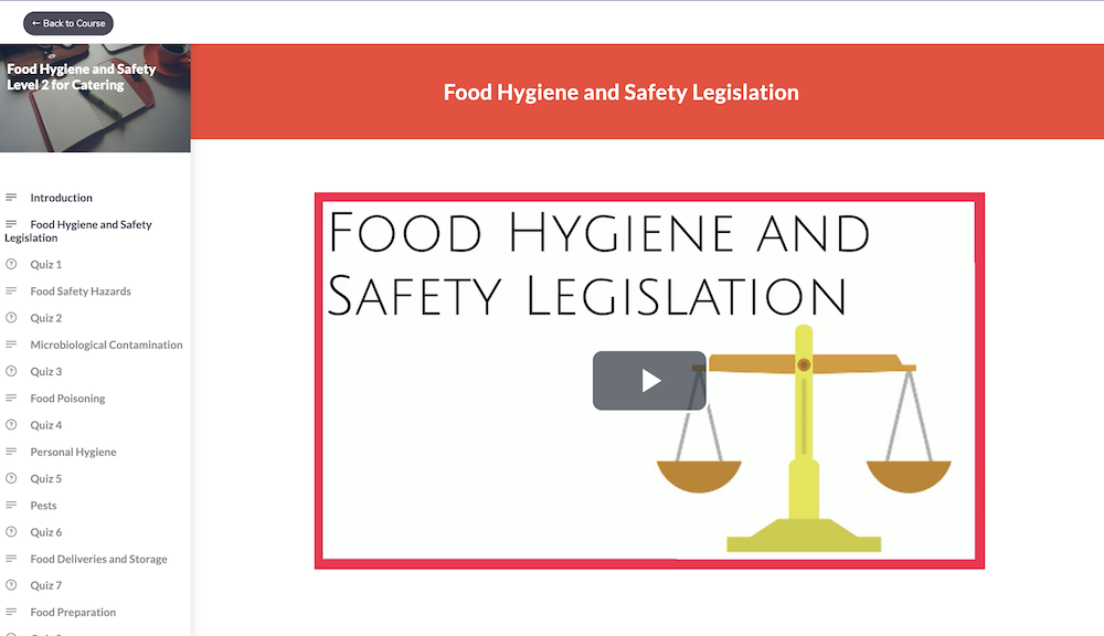 To complete your course and download your food hygiene certificate, you need to have correctly answered enough questions in the quizzes throughout the course. You’re able to retake these quizzes as many times as you want. The certificate is printable and will be accessible at any time when you log into our platform. The certificate is saved on our system so you can use it to prove a commitment to ongoing legal compliance.