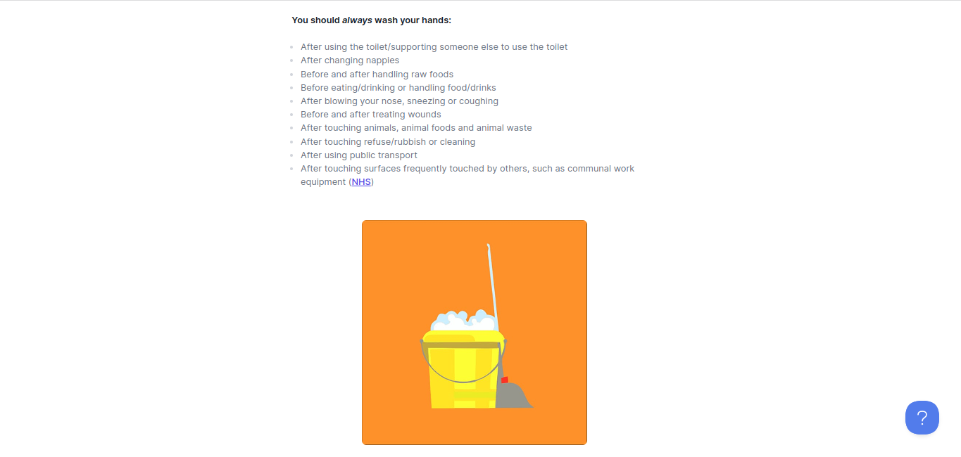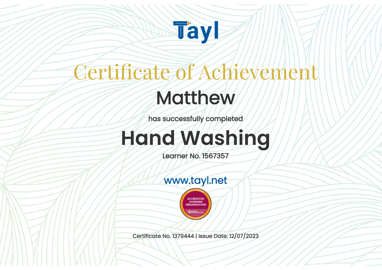 Our Hand Washing e-learning course is delivered online through our Tayl platform. This means you can complete this course on any device that can access the internet, and you can take a break at any time and save your progress. You can also add more users to your account, access more compliance training courses, and track who has done what.