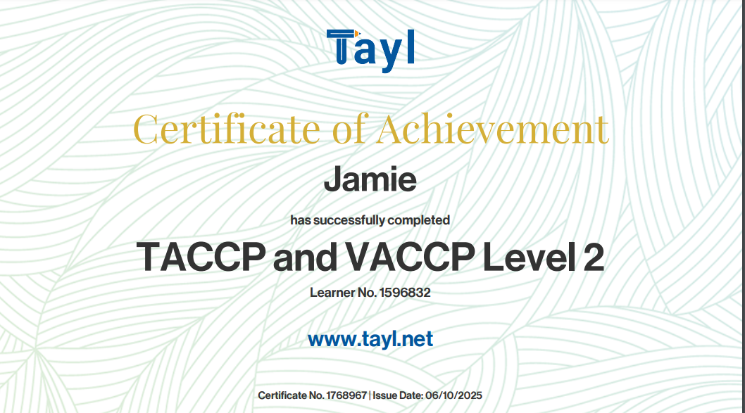 Our Level 2 TACCP and VACCP e-learning course is delivered online through our Tayl platform. This means you can complete this course on any device that can access the internet, and you can take a break at any time and save your progress. You can also add more users to your account, access more compliance training courses, and track who has done what.