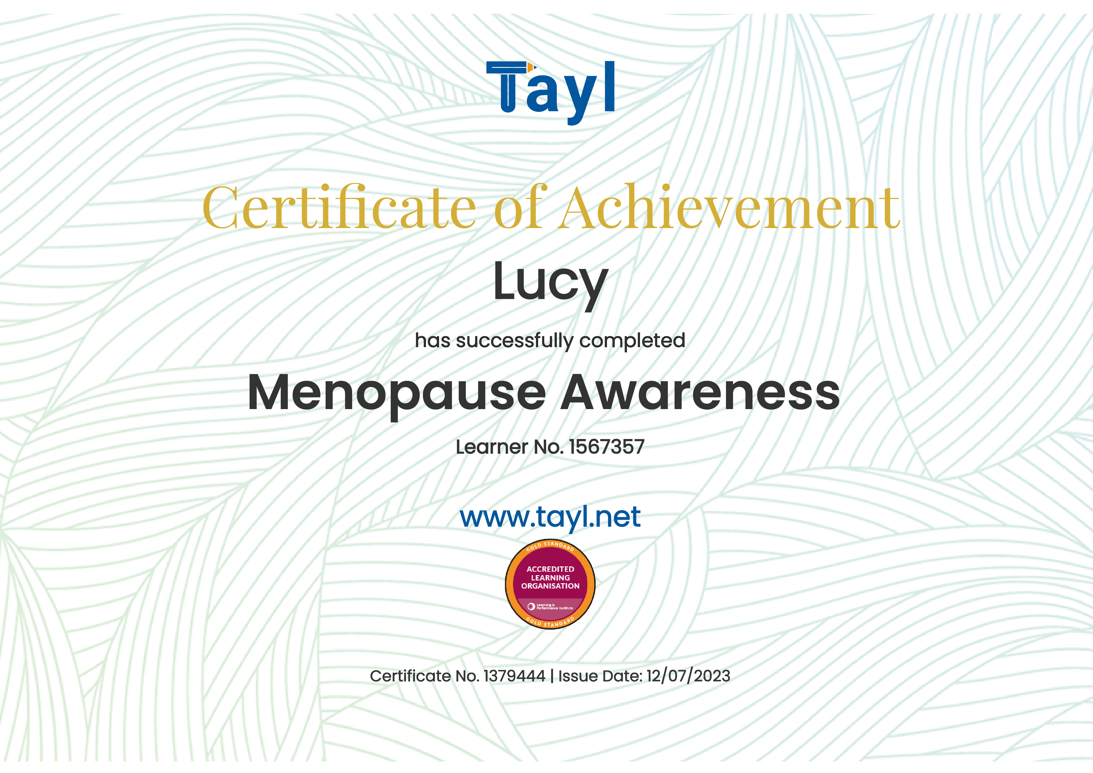 Our Menopause Awareness e-learning course is delivered online through our Tayl platform. This means you can complete this course on any device that can access the internet, and you can take a break at any time and save your progress. You can also add more users to your account, access more compliance training courses, and track who has done what.