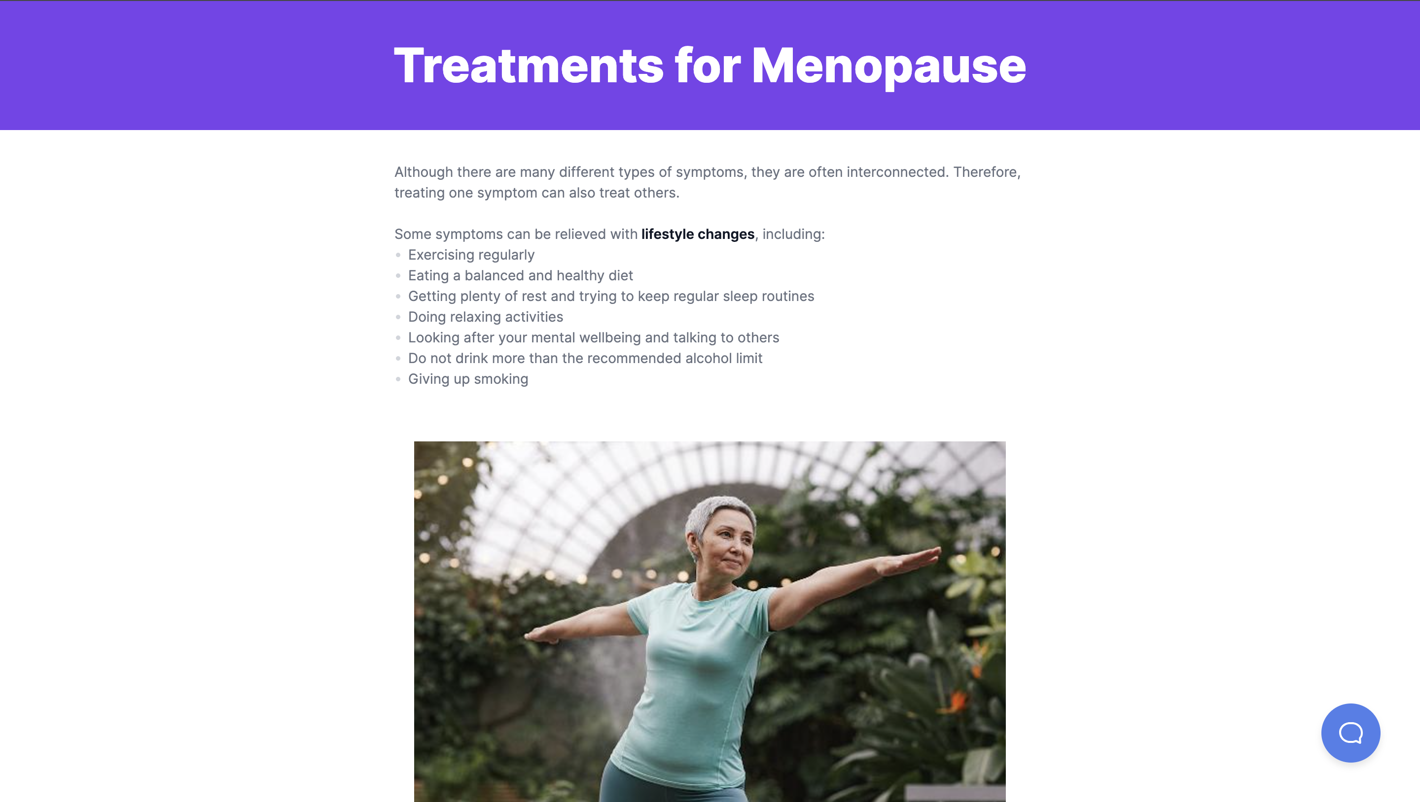 | Treatments for Menopause | Lifestyle Changes; Cognitive Behavioural Therapy (CBT); Non-hormone Medicines; Hormone Replacement Therapy (HRT). |
