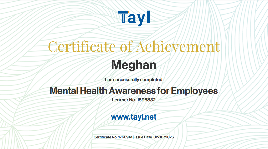 Our Mental Health Awareness for Employees e-learning course is delivered online through our Tayl platform. This means you can complete this course on any device that can access the internet, and you can take a break at any time and save your progress. You can also add more users to your account, access more compliance training courses, and track who has done what.