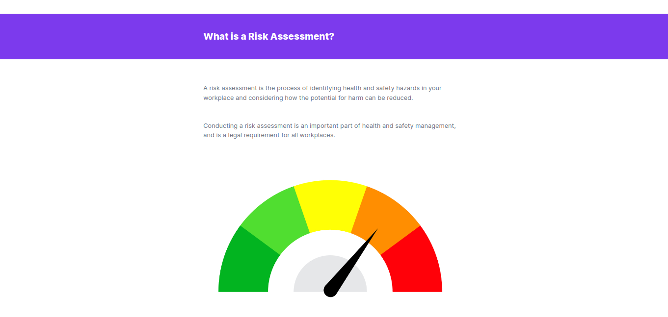Risk assessments are the process of identifying and controlling health and safety hazards in the workplace. Conducting a risk assessment is an important part of health and safety and is a legal requirement for all work activities.