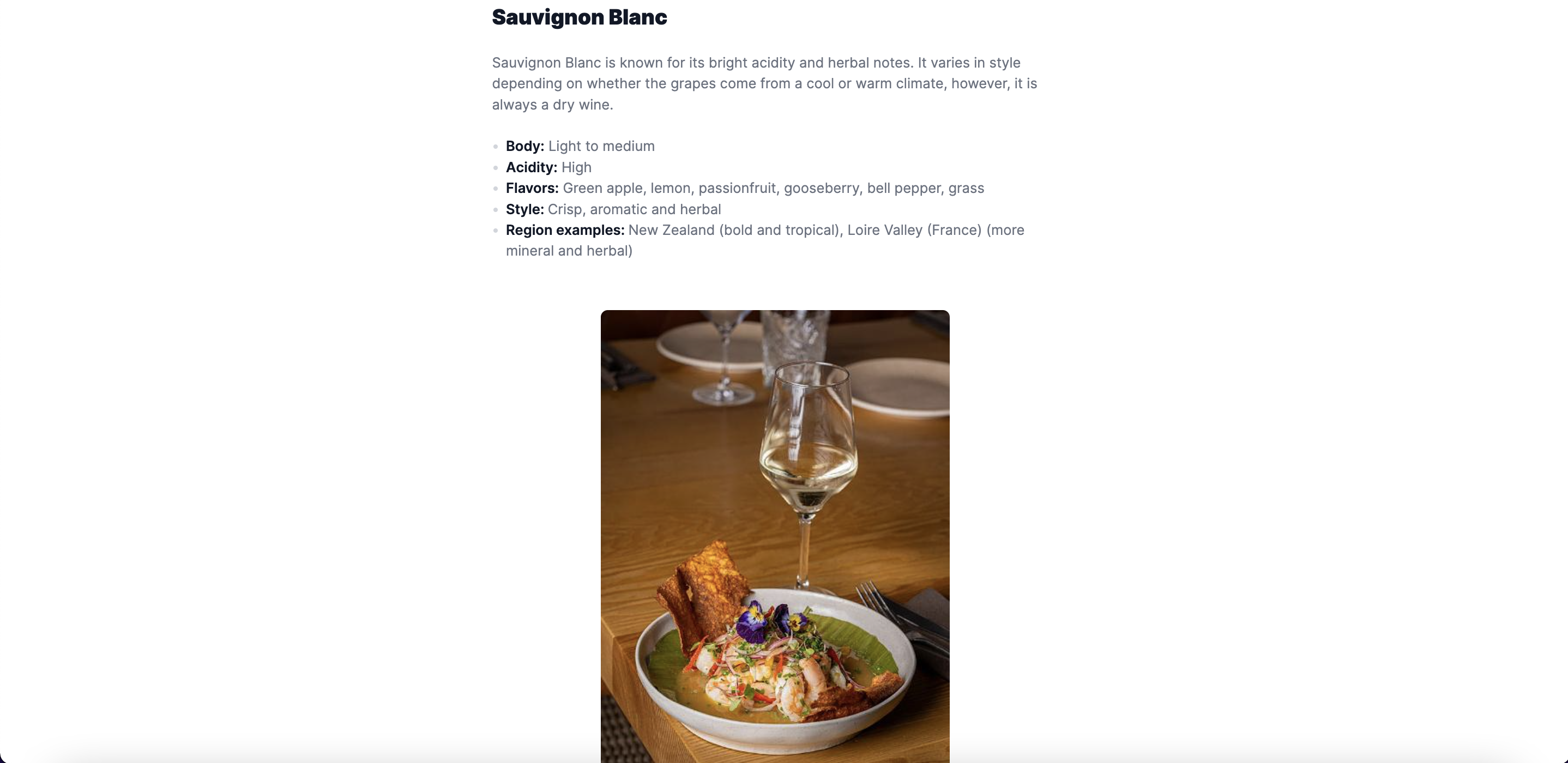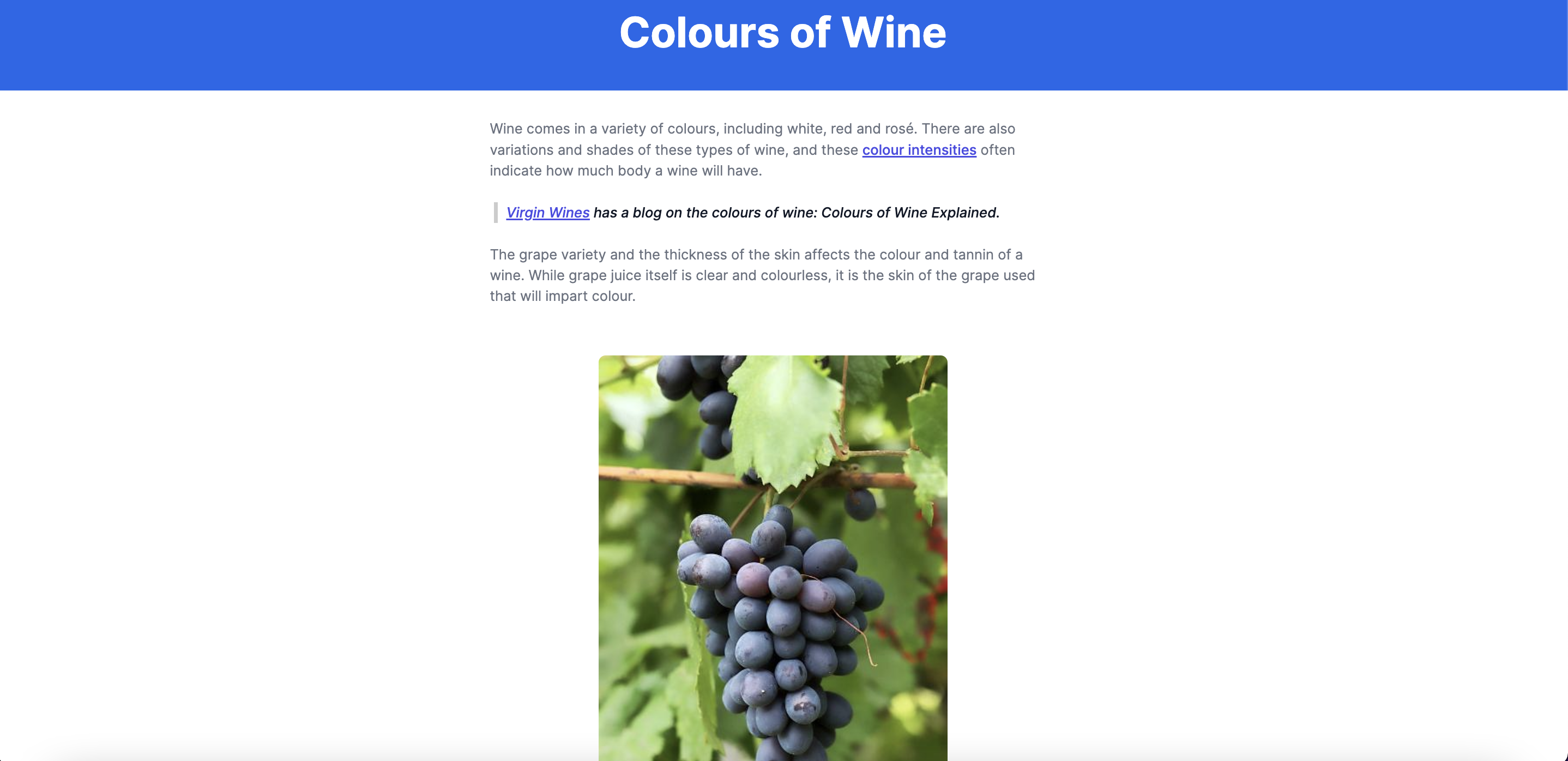 An introduction to wine; Colours of wine and how wine is made; Types of white, red, rosé and sparkling wine; How to store different types of wine; How to serve wine professionally; The 5 S's of wine tasting.