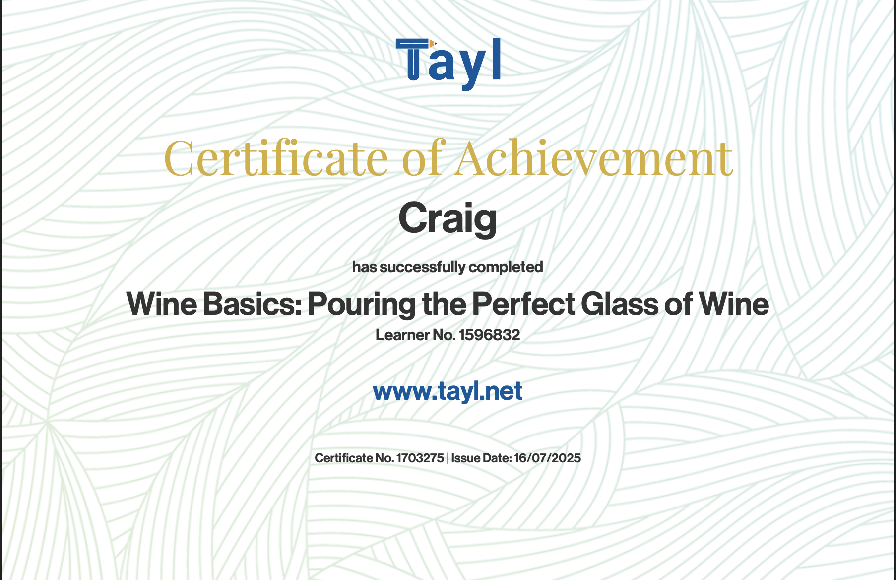 Our Wine Basics: Pouring the Perfect Glass of Wine e-learning course is delivered online through our Tayl platform. This means you can complete this course on any device that can access the internet, and you can take a break at any time and save your progress. You can also add more users to your account, access more compliance training courses, and track who has done what.